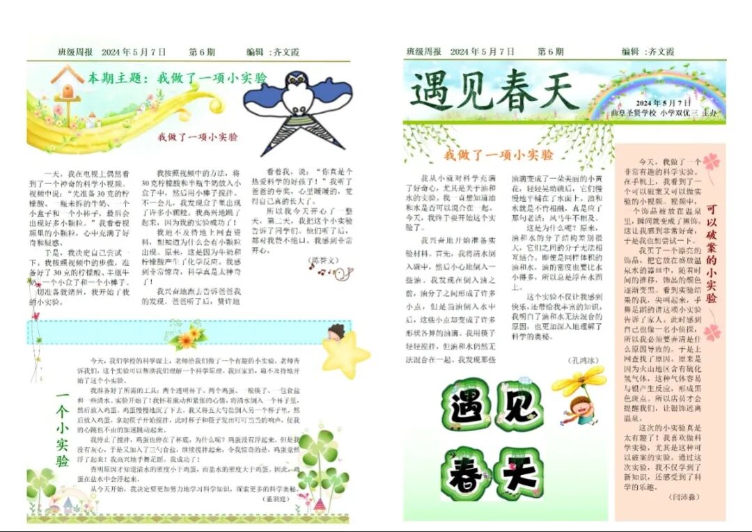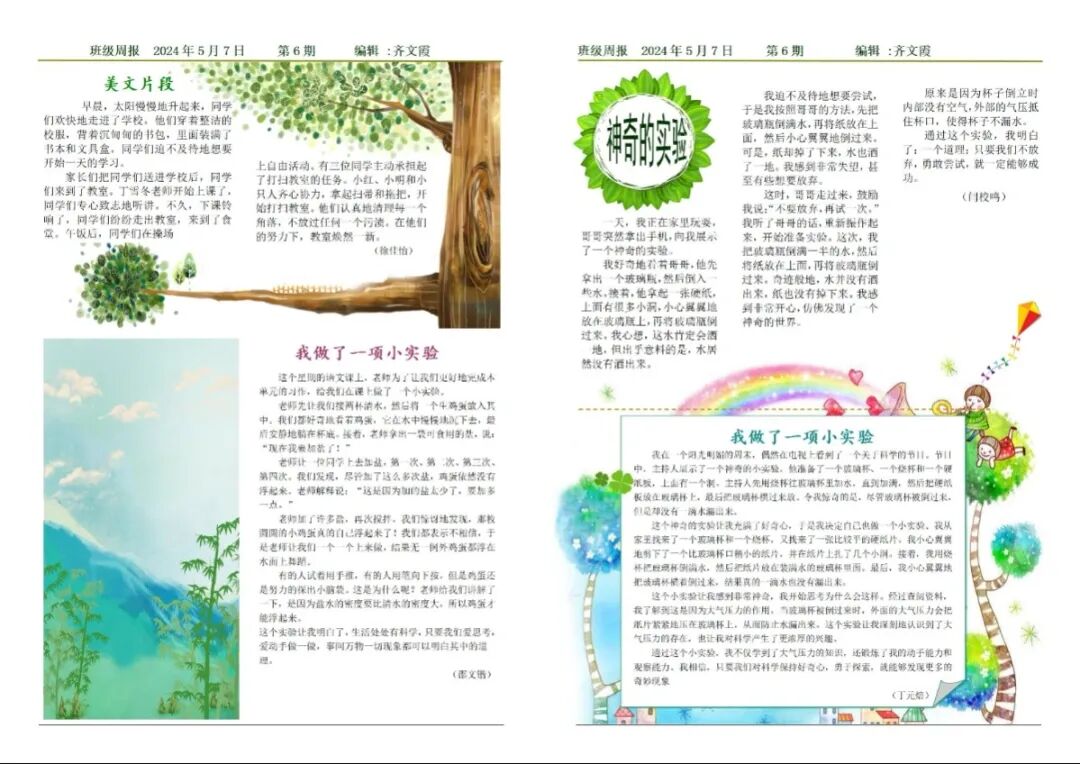 发表时间:2024-05-16 09:34 ![]() ![]() ![]() ![]() 我从小就对科学充满了好奇心,尤其是关于油和水的实验。我一直想知道油和水是否可以混合在一起。今天,我终于要开始这个实验了。 我兴奋地开始准备实验材料。首先,我将清水倒入碗中,然后小心地倒入一些油。我发现在倒入油之前,油分子之间形成了许多小点,但是当油倒入水中后,这些小点却变成了许多形状各异的油滴。我用筷子轻轻搅拌,但油和水仍然无法混合在一起。我发现那些油滴变成了一朵美丽的小黄花,轻轻晃动碗后,它们慢慢地平铺在了水面上。油和水就是不肯相融,真是应了那句老话:风马牛不相及。 这是为什么呢?原来,油和水的分子结构差别很大,它们之间的分子无法相互结合。即使是同样体积的油和水,油的密度也要比水小得多,所以总是浮在水面上。 这个实验不仅让我感到快乐,还带给我丰富的知识。我明白了油和水无法混合的原因,也更加深入地理解了科学的奥秘。 ![]() 今天,我做了一个非常有趣的科学实验。在手机上,我看到了一个可以破案又可以做实验的小视频。视频中,一个饰品被放在温泉里,瞬间就变成了黑饰。这让我感到非常好奇,于是我也想尝试一下。 我买了一个漂亮的饰品,把它放在盛放温泉水的器皿中,随着时间的推移,饰品的颜色逐渐变黑。看到实验结果的我,尖叫起来,手舞足蹈地讲这项小实验告诉了家人。此时感到自己也像一名小侦探,所以我必须弄清是什么原因导致的。于是上网查找了原因。原来是因为火山地区含有硫化氢气体,这种气体容易与银产生反应,形成黑色斑点。所以店员才会提醒我们,让银饰远离温泉。 这次的小实验真是太有趣了!我喜欢做科学实验,尤其是这种可以破案的实验。通过这次实验,我不仅学到了新知识,还感受到了科学的乐趣。 ![]() 一天,我在电视上偶然看到了一个神奇的科学小视频。视频中说:“先准备30克的柠檬酸、一瓶未拆的牛奶、一个小盒子和一个小棒子,最后会出现好多小颗粒。”我看着视频里的小颗粒,心中充满了好奇和疑惑。 于是,我决定自己尝试一下。我按照视频中的步骤,准备好了30克的柠檬酸、半瓶牛奶、一个小盒子和一个小棒子。一切准备就绪后,我开始了我的小实验。 我按照视频中的方法,将30克柠檬酸和半瓶牛奶放入小盒子中,然后用小棒子搅拌。不一会儿,我发现盒子里出现了许多小颗粒。我高兴地跳了起来,因为我的实验成功了! 我迫不及待地上网查资料,想知道为什么会有小颗粒出现。原来,这是因为牛奶和柠檬酸产生了化学反应。我感到非常惊奇,科学真是太神奇了! 我兴奋地跑去告诉爸爸我的发现。爸爸听了后,赞许地看着我,说:“你真是个热爱科学的好孩子!”我听了爸爸的夸奖,心里暖暖的,觉得自己真的长大了。 所以我今天开心了一整天,第二天,我把这个小实验告诉了同学们。他们听了后,都对我赞不绝口。我感到非常开心。 ![]() 今天,我们学校的科学课上,老师给我们做了一个有趣的小实验。老师告诉我们,这个实验可以帮助我们理解一个科学原理。我回家后,迫不及待地开始了这个小实验。 我准备好了所需的工具:两个透明杯子、两个鸡蛋、一根筷子、一包食盐和一些清水。实验开始了!我怀着激动和紧张的心情,将清水倒入一个杯子里,然后放入鸡蛋。鸡蛋慢慢地沉了下去。我又将五大勺盐倒入另一个杯子里,然后放入鸡蛋,拿起筷子开始搅拌,此时杯子和筷子发出叮叮当当的响声,使我的心跳也不由得加速跳动起来。 我停止了搅拌,鸡蛋也停在了杯底,为什么呢?鸡蛋没有浮起来。但是我没有灰心,于是又加入了三勺食盐,继续搅拌起来,令我惊奇的是,鸡蛋竟然浮了起来!我高兴地手舞足蹈。我成功了! 查明原因才知道清水的密度小于鸡蛋,而盐水的密度大于鸡蛋。因此,鸡蛋在盐水中会浮起来。 从今天开始,我决定要更加努力地学习科学知识,探索更多的科学奥秘。 ![]() 早晨,太阳慢慢地升起来,同学们欢快地走进了学校。他们穿着整洁的校服,背着沉甸甸的书包,里面装满了书本和文具盒。同学们迫不及待地想要开始一天的学习。 家长们把同学们送进学校后,同学们来到了教室。丁雪冬老师开始上课了,同学们专心致志地听讲。不久,下课铃响了,同学们纷纷走出教室,来到了食堂。午饭后,同学们在操场上自由活动。有三位同学主动承担起了打扫教室的任务。小红、小明和小只人齐心协力,拿起扫帚和拖把,开始打扫教室。他们认真地清理每一个角落,不放过任何一个污渍。在他们的努力下,教室焕然一新。 ![]() 这个星期的语文课上,老师为了让我们更好地完成本单元的习作,给我们在课上做了一个小实验。 老师先让我们接两杯清水,然后将一个生鸡蛋放入其中。我们都好奇地看着鸡蛋,它在水中慢慢地沉下去,最后安静地躺在杯底。接着,老师拿出一袋可食用的盐,说:“现在我要加盐了!” 老师让一位同学上去加盐,第一次、第二次、第三次、第四次。我们发现,尽管加了这么多次盐,鸡蛋依然没有浮起来。老师解释说:“这是因为加的盐太少了,要加多一点。” 老师加了许多盐,再次搅拌。我们惊讶地发现,那枚圆圆的小鸡蛋真的自己浮起来了!我们都表示不相信,于是老师让我们一个一个上来做,结果无一例外鸡蛋都浮在水面上舞蹈。 有的人试着用手推,有的人用笔向下按,但是鸡蛋还是努力地探出小脑